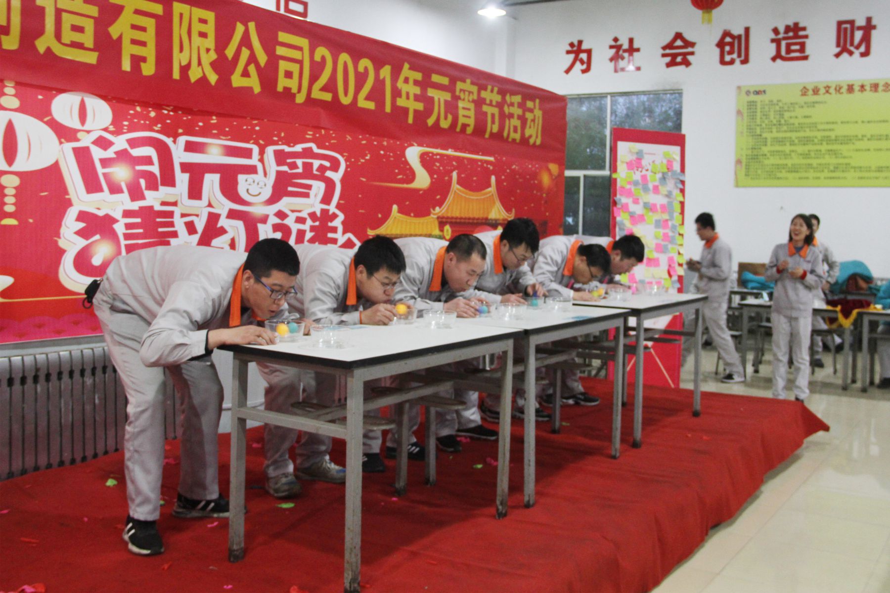 為弘揚中國傳統元宵節文化,豐富全體員工文娛生活,營造新春佳節喜慶、祥和的節日氛圍,增強員工團結、向上、積極的工作精神,促進生產經營工作良好發展。2月25日晚17:20,由公司團委牽頭組織的2021年度“猜燈謎、慶元宵”聯歡晚會在員工餐廳隆重舉行。